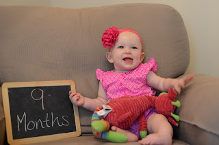 This sweet baby is a speed demon! Nine-month-old Cate is a crawling machine. She gets those chubby little hands and feet slapping at the ground at a pretty alarming rate. By the way - the phrase "pitter patter of little feet" is a misnomer in my book. I much prefer the slapping hands of crawling kiddos. But I digress...